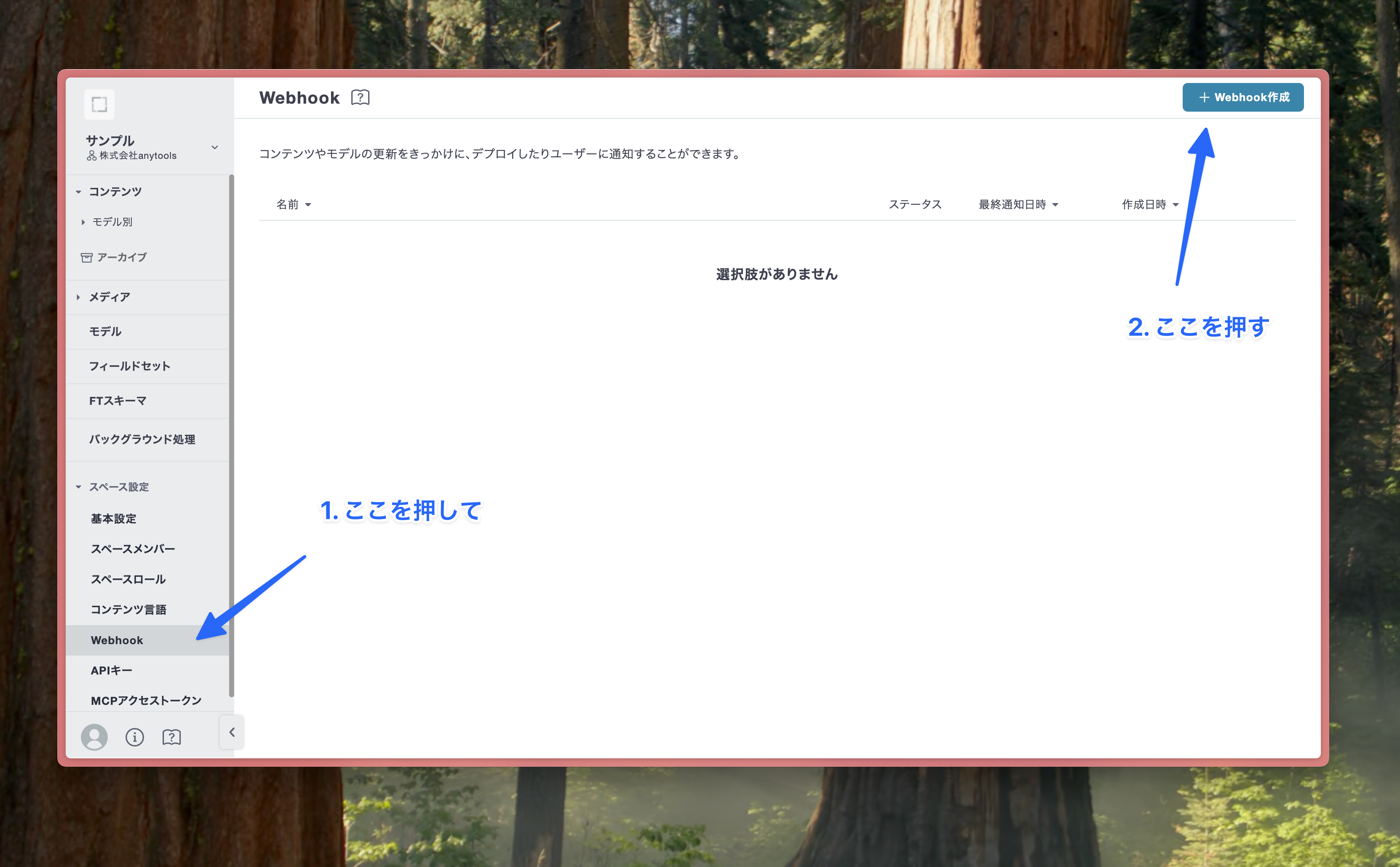 WebHook設定画面を開く