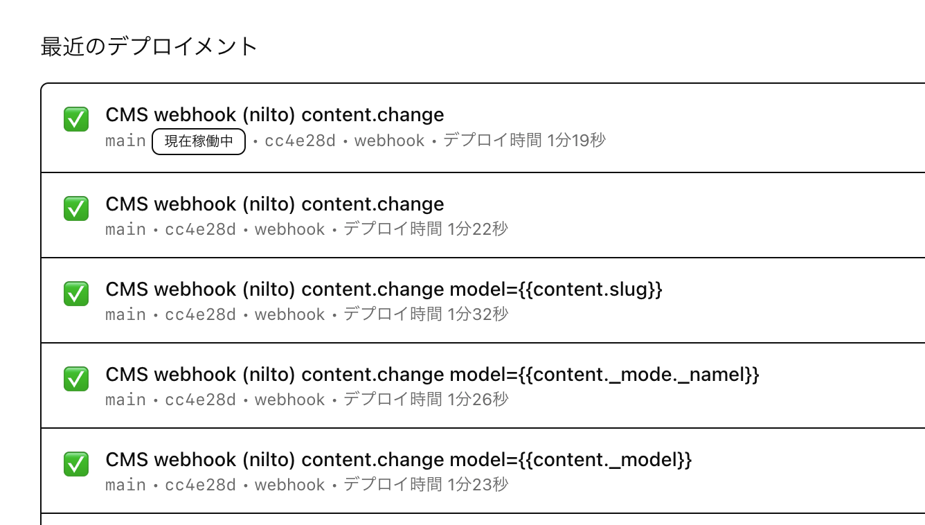 記事を作成すればWebHookが送信されデプロイが実行されます。